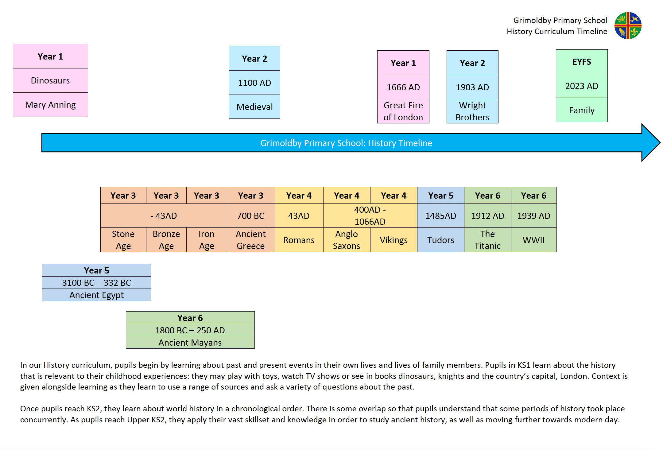 The impact and measure of this is to ensure that children at Grimoldby Primary School are equipped with historical skills and knowledge. We want pupils to have enjoyed learning about history; recall their learning overtime; and understand the world they are part of. Enabling children with the ability to think critically and with perspective ensures them will be ready for the curriculum at Key Stage 3 and for life as an adult in the wider world.