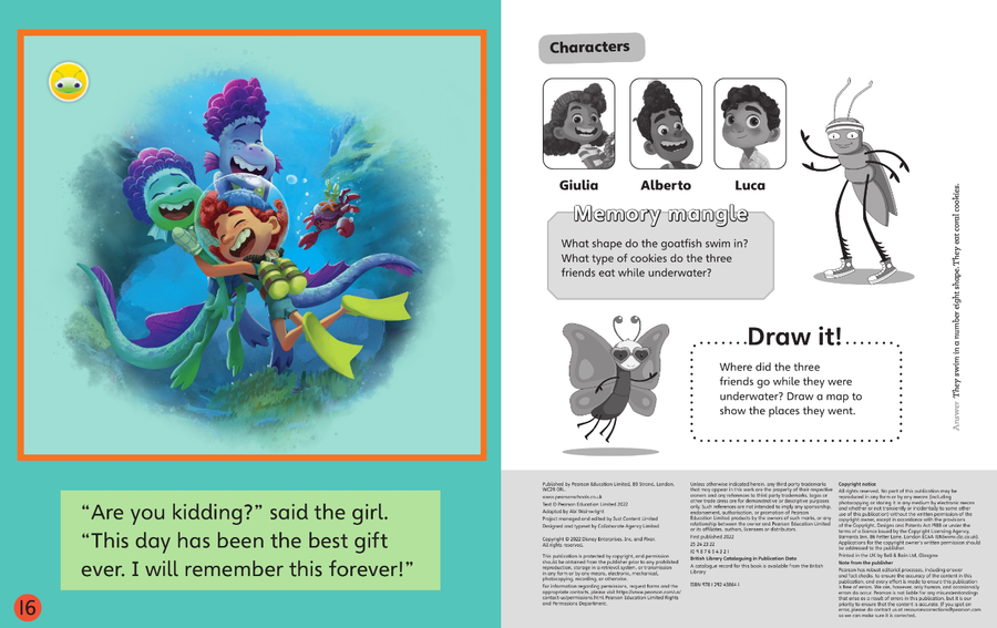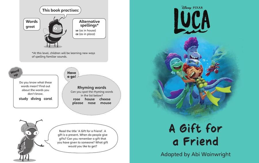 Inside back cover: these notes suggest puzzles and challenges that help children think about their reading. These include ‘Find it!’ activities that encourage children to revisit the text; ‘Share it!’ tasks that may involve making or writing something, and other ideas that offer ideas for further reading.