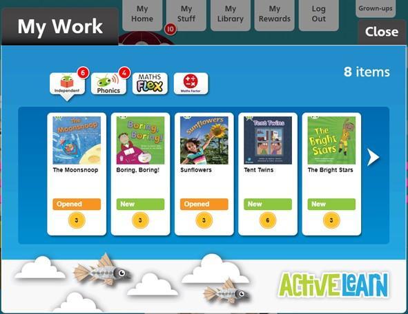 We allocate most books to your child according to their reading levels, but may also allocate books that are beyond their level that are of high interest or linked to a curriculum area. These books will appear in the ‘My Stuff’ area of their personal homepages.