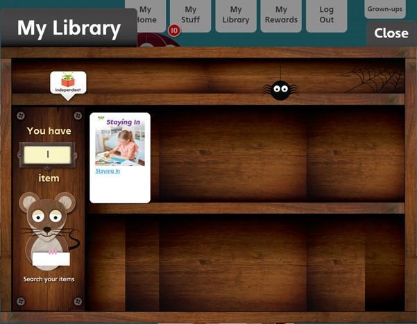 When your child has finished a book, it will move to ‘My Library’. Children can read these books again if they want to, or they can choose new books from ‘My Stuff’.